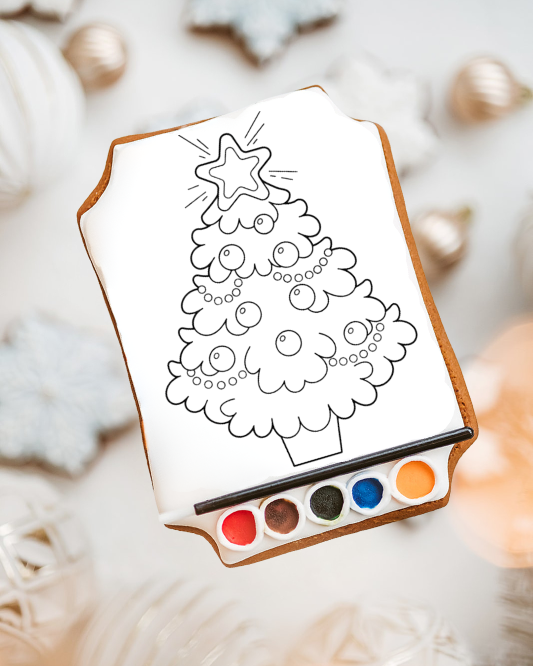 Suvilgyk teptuką vandeniu, pasidažyk į dažų skritulėlį ir spalvink meduolį. Pabaigus smagų darbelį – gardžiai suvalgyk! Šis meduolis labai didelis, tad suvalgyti galima ir dalimis.