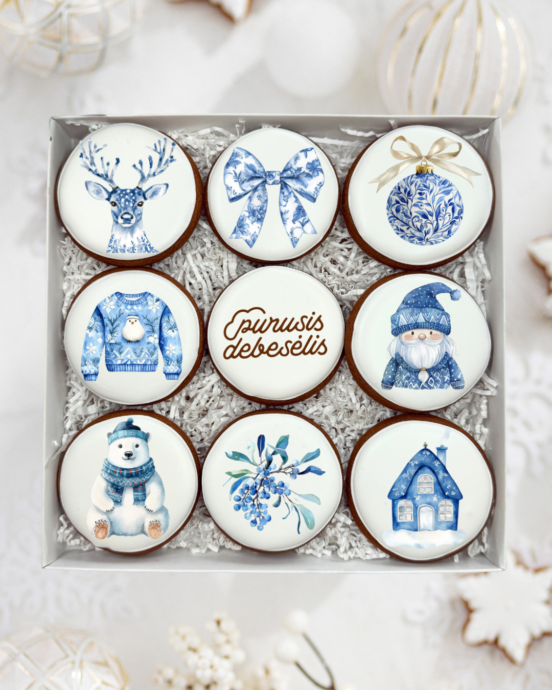 „Kalėdų grožis Nr. 2” su logotipu – dekoruotų meduolių rinkinys