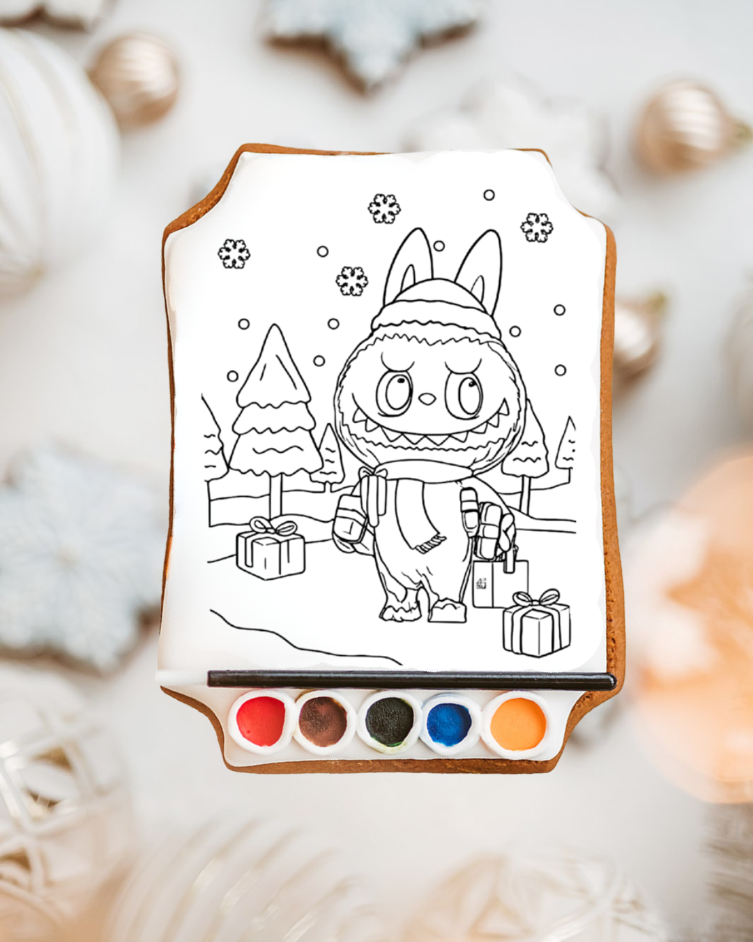 Suvilgyk teptuką vandeniu, pasidažyk į dažų skritulėlį ir spalvink meduolį. Pabaigus smagų darbelį – gardžiai suvalgyk! Šis meduolis labai didelis, tad suvalgyti galima ir dalimis.