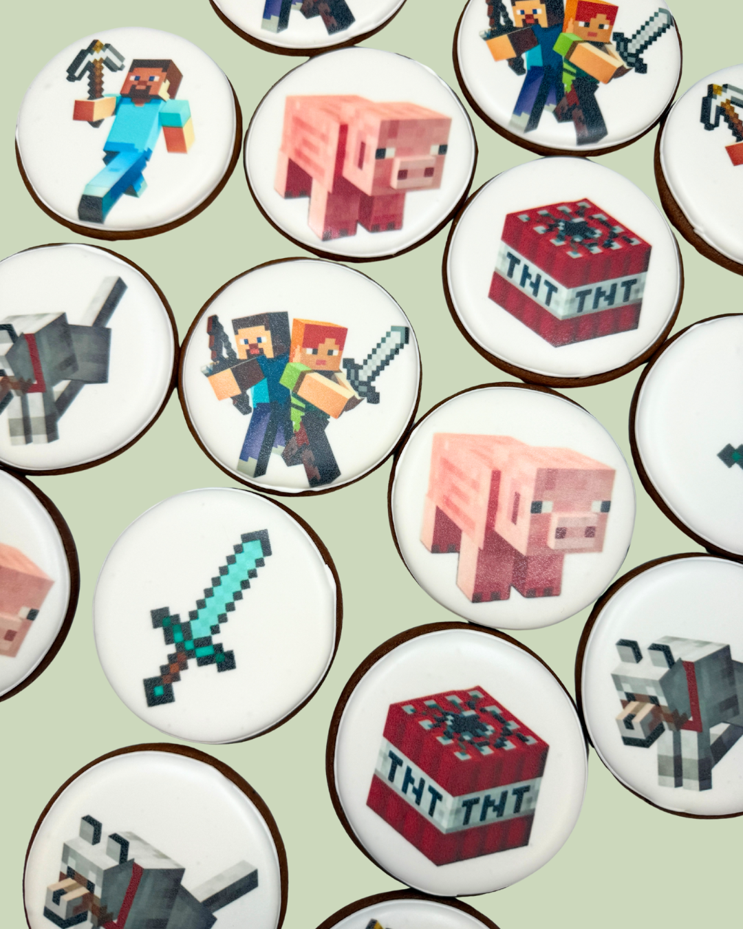 Meduolio dydis: 7.5 cm. Mažiausias užsakomas kiekis : 10 vnt. Kiekvienas meduolis supakuotas indvidualiame skaidriame maišelyje.