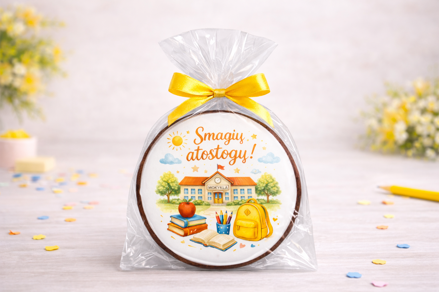 „Smagių atostogų! Nr. 1″ dekoruotas meduolis